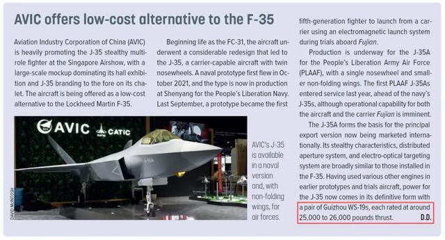 但你要说这些西方的报道一点营养都没有,也不是,紧跟着人家就给你爆了个狠料。据说是新加坡航展的会刊表示,歼-35A型在技术验证机、原型机阶段先后试验过多型号发动机,目前最终选择的发动机是涡扇-19型涡轮风扇发动机。